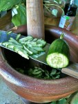 A quick flurry of chopping and mixing in the mortar and we are sitting down to a refreshing cucumber salad. “Break off a piece of the Bac Ha peeled stalk and use like a spoon”. Totally refreshing and fascinating.
