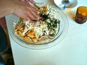 Not just mixing but also giving a bit of a gentle squeeze
