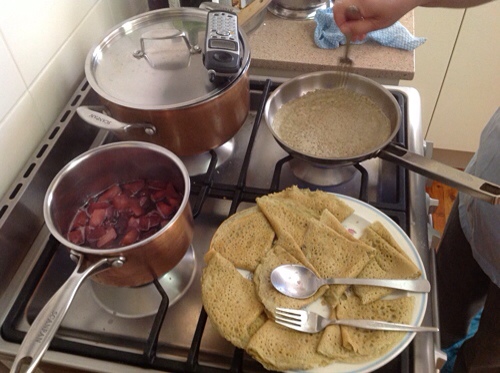 Serve with the fruit sauce in a nice dish ready to spoon onto your awesome gluten free pancake.