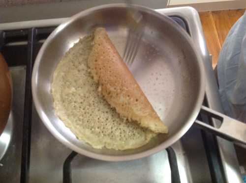 - Meditate (don’t wait) until the edge of the pancake is peeling away. Now we are cooked.